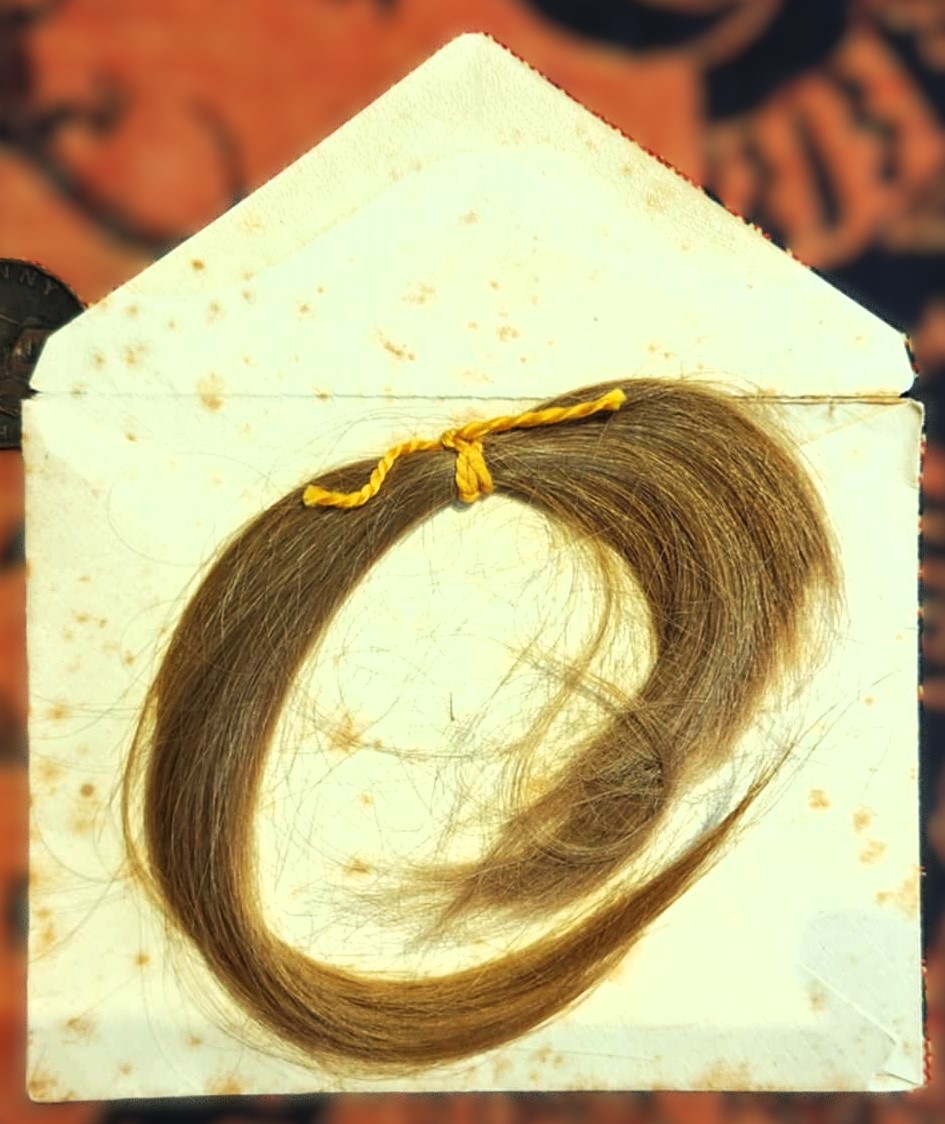 N’ayant pas de photo de la petite fille, sa sœur Célina conserva une mèche de ses cheveux avant qu’elle ne parte aux USA.