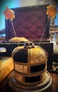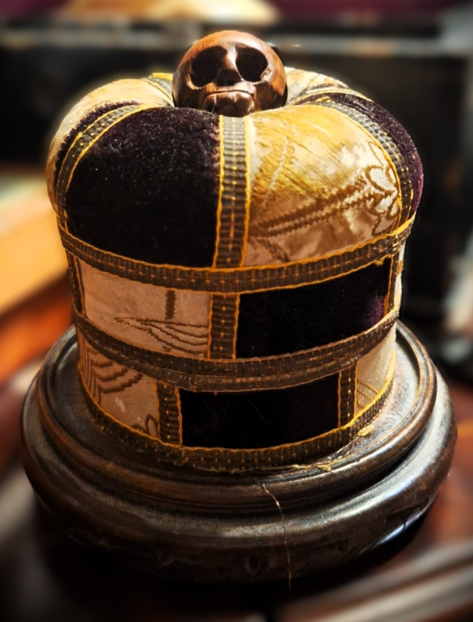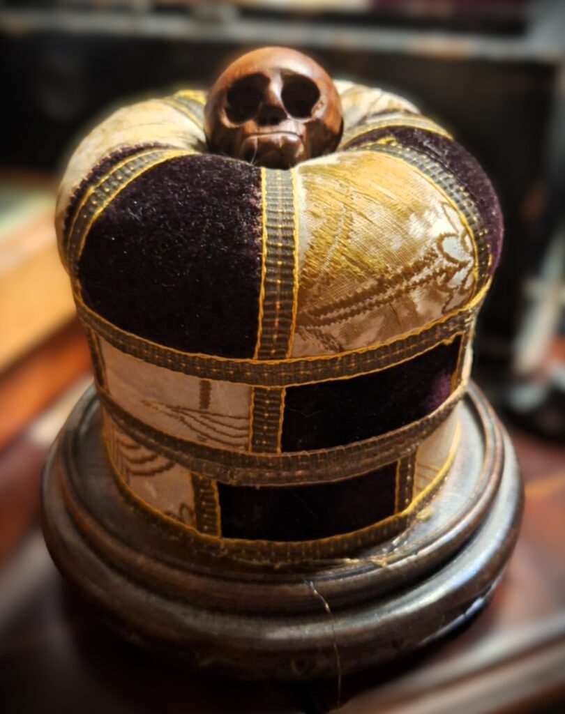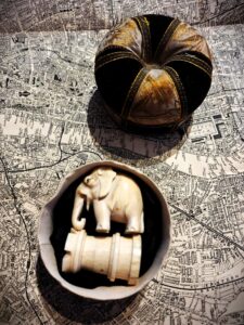 C’est en faisant une recherche sur les armes de défense de rue des Londoniennes vers la fin du XIXe siècle, que nous sommes tombés sur une étrange relique : un ancien coussin porte-aiguilles en forme de couronne, contenant un éléphant et une tour d’ivoire. Combinaison inattendue, mais…