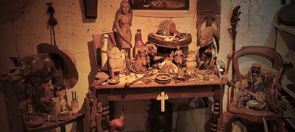 Dans le vaudou haïtien, un bokor (ou bôkò, féminin: Caplata) est un praticien de la magie, souvent associé à la sorcellerie ou à la magie noire, qui se distingue du prêtre vaudou traditionnel (le houngan ou la manbo). Contrairement aux houngans/manbos qui servent les esprits (lwa) pour la guérison et la protection (la “main droite”), … Continue reading le Bokor, son Pé et son Badji