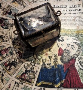 Magiciens et Sorcières, en ces temps de fêtes, n’hésitez pas à vous affronter au Grand Jeu du Sorcier, à l’instar du Jeu de l’Oie. (France, milieu du XIXe siècle) Mettez un sortilège ou un objet magique au centre du plateau de jeu, la course au trésor commence.