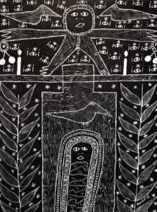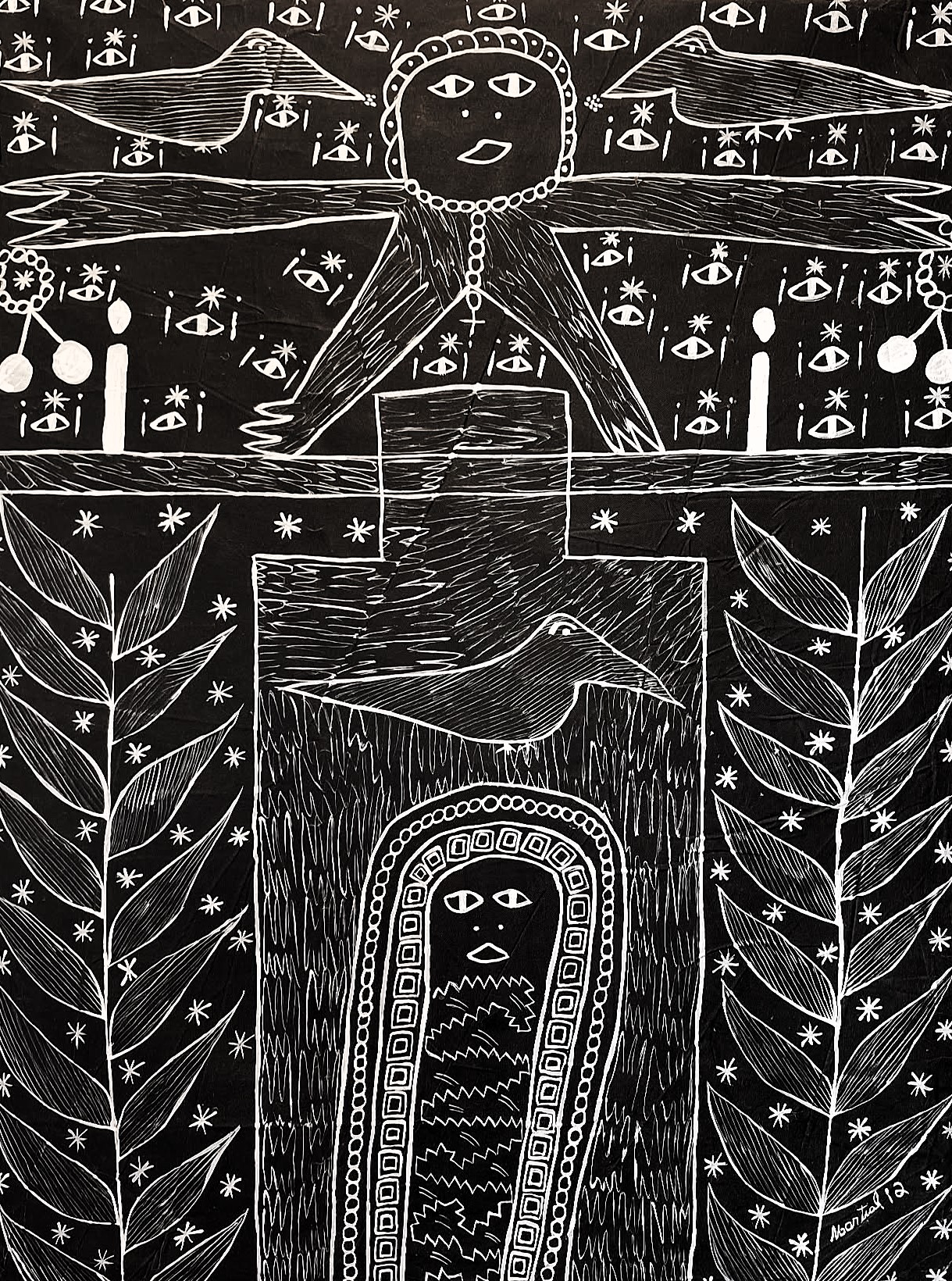 L’autel vaudou est donc non seulement un espace où se mélangent l’art sacré d’origine d’Afrique de l’Ouest, l’art tout aussi sacré des artistes haïtiens, un espace théâtral pour un théâtre magique et une création personnelle. Voyageant à la fois dans l’histoire, l’ethnographie, les magies, le conte et l’illusionnisme fantastique.