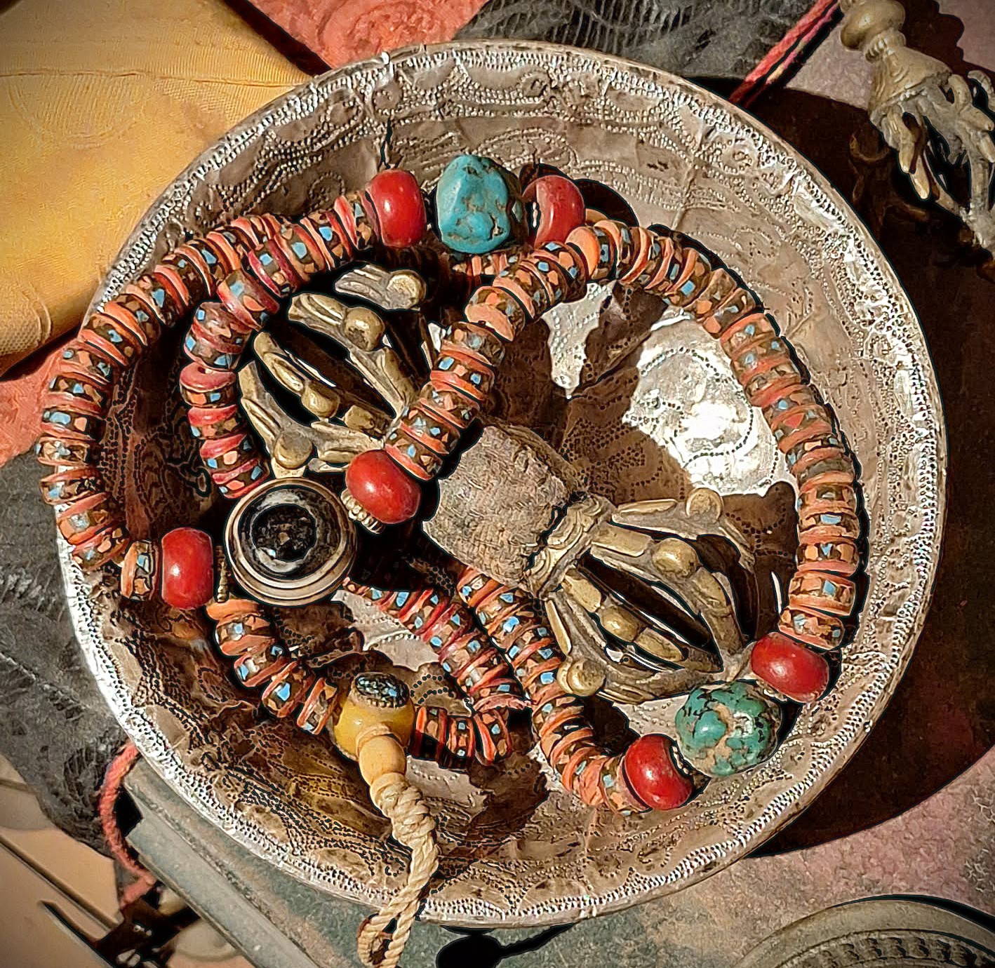 Le mala (chapelet bouddhiste) : Un collier de perles utilisé pour la prière et la méditation.