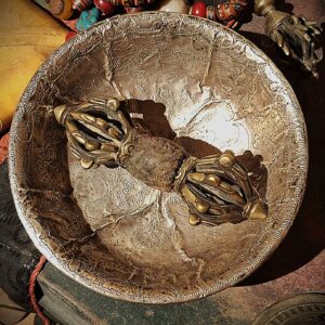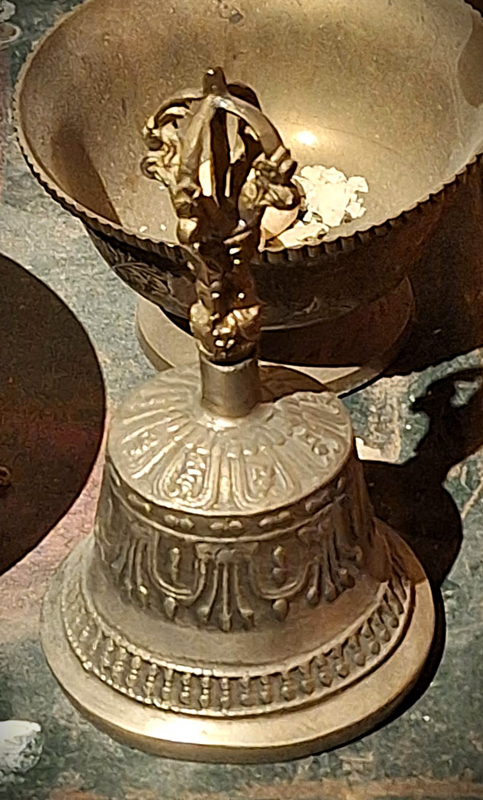 La cloche rituelle (Ghanta) : Symbole de la sagesse et de l’aspect féminin de l’illumination.